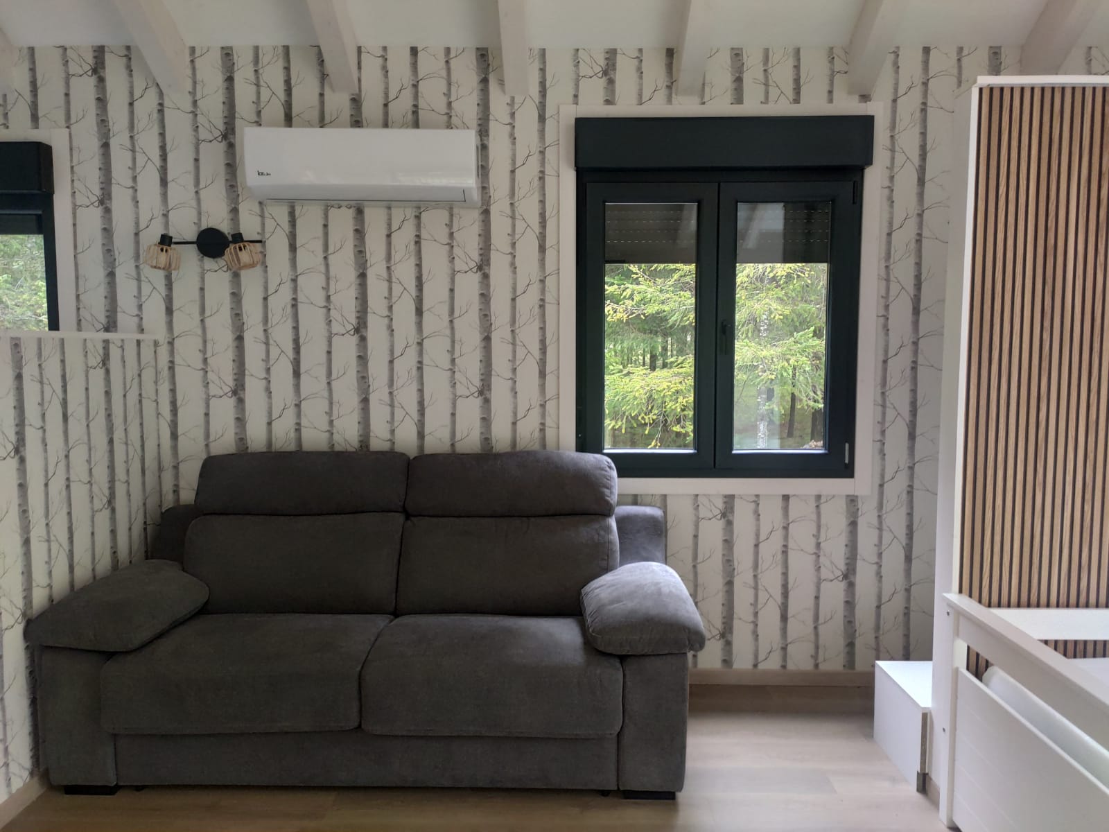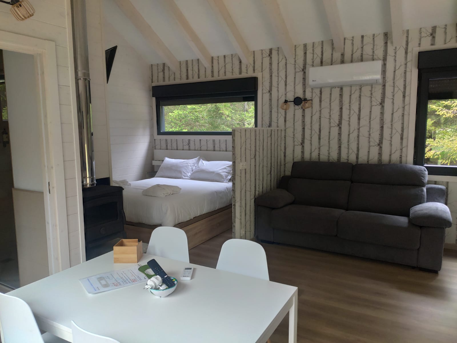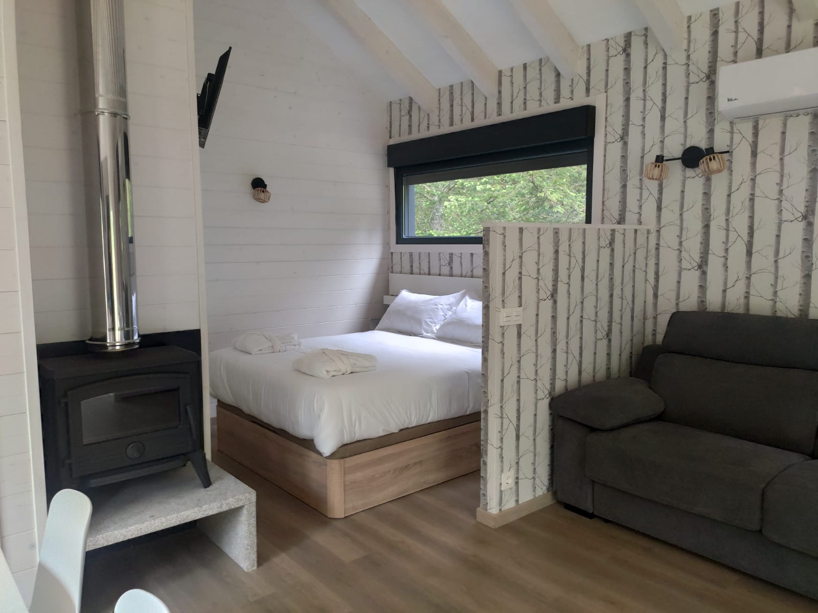 La Cabaña Gris (Cabana Gris) es la última de nuestras 6 cabañas. Es la única que tiene capacidad para hasta 6 personas, ya que cuenta con una cama de 1,50m, sofá cama, y una cama nido que despliega dos camas de 0,90m.